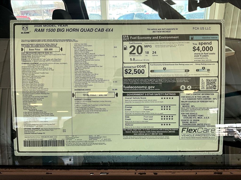 Big Horn/Lone Star | 16 milesStock # N6100390 | VIN # 1C6SRFBP9TN315387